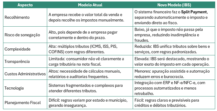Comparativo: modelo atual x IBS com Split Payment e automação